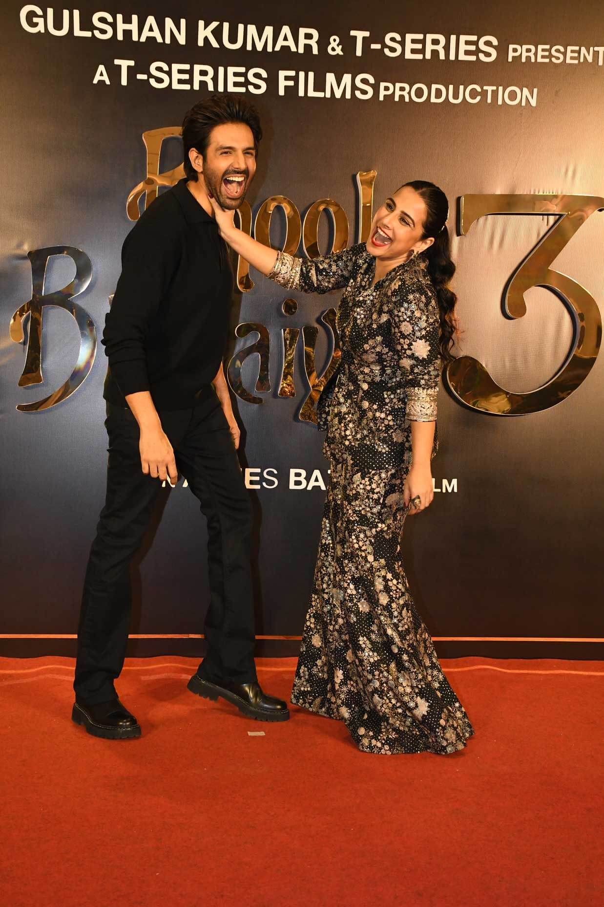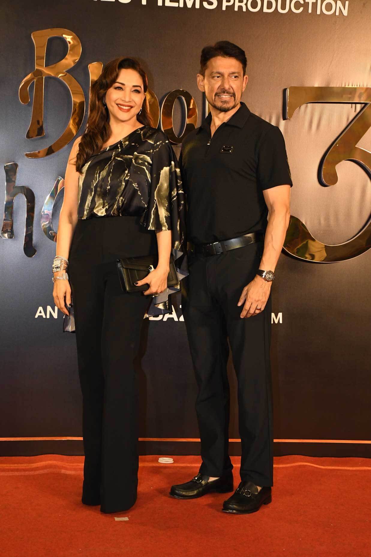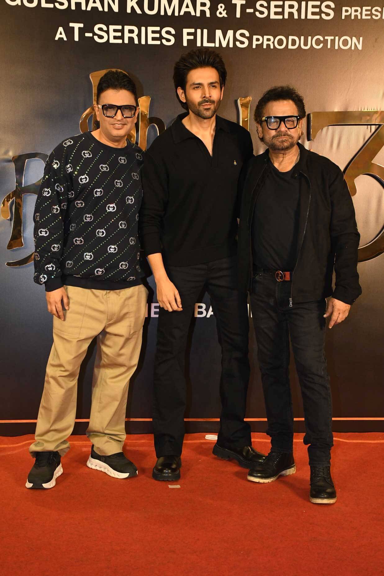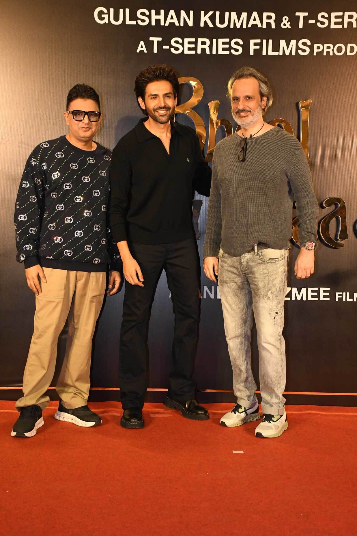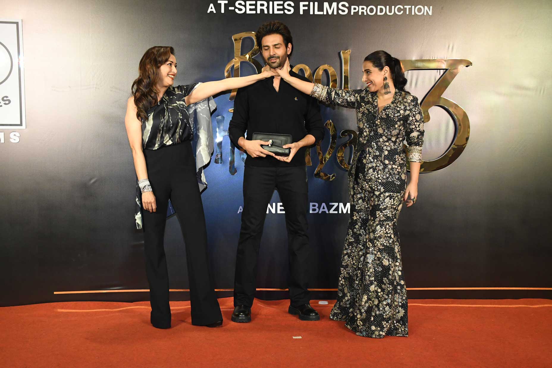 The Indian Television Academy > Bollywood News > Madhuri Dixit, Vidya Balan, and Kartik Aaryan celebrated the success of Bhool Bhulaiyaa 3 alongside Bhushan Kumar and Anees Bazmee at a party.